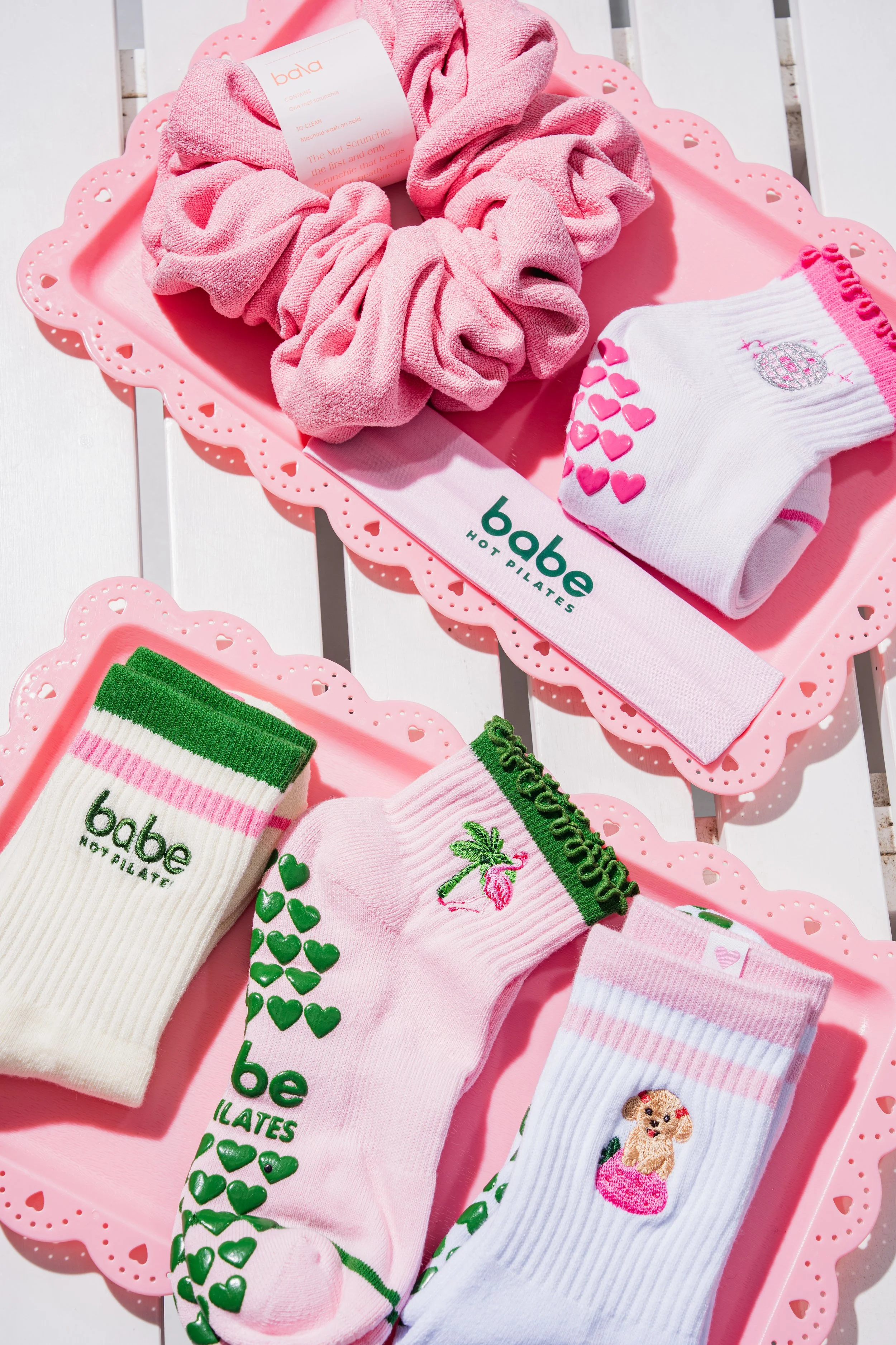 Tropical, playful, and oh-so-Miami 🌴💗. These grippy socks bring the vacation energy to your mat or reformer with pink flamingo and palm embroidery.